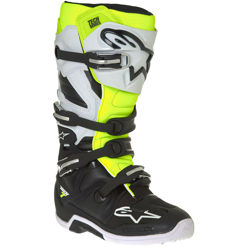 ALPINESTARS TECH 7 BOOTS Black White Yellow Fluro Motocross 2018 **NEW**